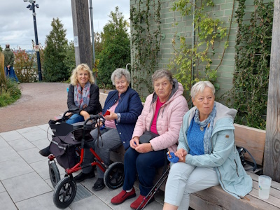 besuchen. Wer ganz nach oben wollte, musste zunächst 389 Stufen und 560 Meter auf dem sogenannten Bergpfad bewältigen. Über Rampen und Treppen schlängelte sich der Weg um den Bunker herum nach oben. Wir wurden mit spektakulären Ausblicken auf die Stadt belohnt. Danach fuhr der Bus uns zum größten Parkfriedhof der Welt nach Ohlsdorf. Am Eingang nahmen wir unsere Reiseleitung für die Rundfahrt/gang auf. Wir erhielten viele wichtige Informationen, wie zum Beispiel, dass der Park mit seinen 389 Hektar zugleich Hamburgs größte Grünanlage ist. An einigen Stellen sind wir aus dem Bus ausgestiegen und haben die Gräber berühmter Persönlichkeiten besucht, darunter den ehemaligen Bundeskanzler Helmut Schmidt und seine Frau Loki, die Schauspieler Hans Albers, Jan Fedder und Inge Meysel sowie den Fußballer Uwe Seeler. Sehr beeindruckend war auch die Gedenkstätte "Garten der Frauen". Zum Abschluss ging es ins Café Fritz. Mit toll angerichtet Etageren voller kleiner Kuchenstückchen genossen wir das Kaffeetrinken. Von da aus fuhren wir wieder zurück in die Heimat 😀 (Fotos und Text mk) |