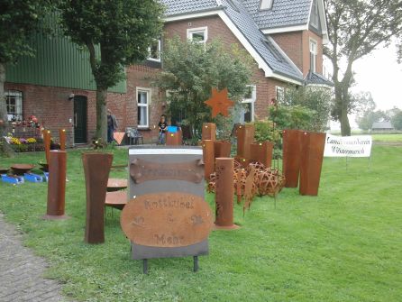 Zahlreiche Aussteller und viele Gäste bevölkerten die Diele auf dem Anwesen von Silke Wille in Dodenkopp. Die Vorstandsfrau des Landfrauenverein Wilstermarsch hatte zu einem Kreativmarkt eingeladen, bei dem der Ideenreichtum der Landfrauen im Vordergrund stand. Dekoartikel für Haus und Garten in den verschiedensten Ausführungen, Tiffany-Artikel, kunstvoll in Form geschnittene Buchsbäume und rostige Hingucker fürs Blumenbeet, sowie Tongefäße, Geschenkverpackungen und Schmuck ließen keine Wünsche offen. Wie kreativ Landfrauen sind, zeigten die Hobbymalerinnen Henny Beyer und Gudrun Körner mit ihren Bildern. Gunda Mohr fräste filigrane Bilder in Gläser für persönliche Anlässe und Rosi Thumann hatte ihre Nähmaschine aufgebaut. Die Vorsitzende der Landfrauen-Trachtengruppe präsentierte ihre Patchwork-Arbeiten und erklärte ihre Vorgehensweise. „Eigentlich werden ausgesuchte, hochwertige Stoffe zerschnitten, um sie mühevoll wieder zusammenzusetzen“, so die Kurzfassung. Der Vereinsvorstand bewirtete Marktbeschicker und Besucher mit selbstgemachten Torten, Brot und Brötchen sowie Getränken. Die aufgebaute Cafeteria entwickelte sich zur gemütlichen Klönecke, in der nicht nur Kontakte geknüpft und Gespräche geführt wurden. Die Landfrauen nutzten den Tag auch zur Mitgliederwerbung und Präsentation ihres eigenen Veranstaltungsangebots.(sko) |