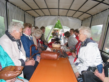Die Landfrauengruppe der Wilstermarsch genoss bei trübem Wetter eine „Historische-5-Güter-Tour“. Mit dem Bus ging es nach Bovenau, wo die 80 Frauen in bereitstehende Kutschen stiegen. Hans Georg Wendt führte die Gesellschaft mit seinem Team an Aussichtspunkte wie die Schleusenanlage Kluvensiek. Sie gehört zur Verbindung der Kieler Förde mit der Eider und wurde 1777 bis 1784 mit dem Eiderkanal gebaut. Die Passage wurde bis zur Eröffnung des Nord-Ostsee-Kanals genutzt. Der Touristenführer erzählte über die Region und seine Eigenarten. Als Gemeinderatsmitglied konnte er Auskunft über Arbeitslosigkeit und wirtschaftlichen Fortschritt geben. Vorbei am Herrenhaus der Güter Osterrade und Georgenthal ging es per Pferdefuhrwerk zum Gut Steinwehr direkt am Kanal gelegen. Einen schönen Anblick bot das Herrenhaus Dengelsberg, das aus alten Feldsteinen gemauert und reetgedeckt auf einem Hügel liegt. In einem gepflegten Park liegt Gut Kluvensiek, das heute für Tagungen und Seminare der Firma Stratmann genutzt wird. Nach einem Mittagessen in der Gaststätte Willrodt in Schacht-Audorf fuhr die Gruppe wieder mit dem Bus nach Rendsburg zu einer Stadtführung. Auf dem Paradeplatz zeugte ein Pflasterstein von der letzten Enthauptung in der Kreisstadt. Interessant war die Tatsache, dass die Christ- oder auch Garnisonskirche im Jahre 1703 einen Altar aus Glückstadt für 108 Taler erstand. Die Glückstädter wollten den Opfertisch nicht und waren froh, ihn los zu sein. Jetzt schmückt er seit über dreihundert Jahren die Kirche in Rendsburg. Nach kurzen Regenfällen am Vormittag, konnte der Rundgang durch die Altstadt bei Sonnenschein fortgesetzt werden. Zum Kaffee wurde der Himbeerhof Steinwehr angefahren, wo die Landfrauen die ersten, frisch am Morgen geernteten Erdbeeren in Form von Sahnetorte genießen konnten. Der Betreiber des Hofes erläuterte den Gedanken, aus einer nicht mehr florierenden Landwirtschaft einen „Beeren“-Hof zu machen. Aus wenigen Himbeerbeeten wurden mit den Jahren große Felder, auf denen Beeren aller Art angebaut und mittlerweile auch zum Teil auf dem Hof verarbeitet werden. Durch Verwendung einer Fliesslochfolie gewinnt der Landwirt gute 14 Tage Reifezeit. Die Reisegruppe erstand die frischen Früchte und ließ sich durch den Betrieb führen, bevor die Rücktour in die Wilstermarsch angetreten wurde.(sko) |