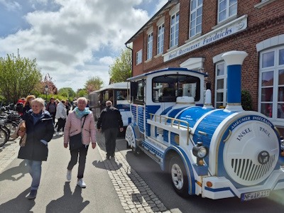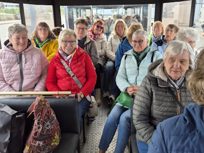 Bei leichtem Nieselregen starteten 56 LandFrauen am 06. Mai um 6:30 Uhr mit dem Bus nach Amrum. Die Fahrt ging nach Dagebüll, wo wir auf die Fähre gingen. Mit einem kurzen Zwischenstopp auf Föhr fuhren wir weiter nach Amrum. Auf Amrum wartet schon die Inseleisenbahn auf uns, um zur Rundfahrt zu starten. Schnell klarte der Himmel auf und die Sonne schien. Die Fahrt ging von Wittdün im Süden über Steenodde und Nebel bis in den Norden nach Norddorf - quer über die Insel. Wir sahen die Wahrzeichen von Amrum - den Leuchtturm und die Windmühle. Auf der Rückfahrt hielten wir im Hotel Friedrichs in Nebel, wo wir ein leckeres Mittagessen bekamen. Leider war die Zeit auf Amrum sehr knapp, so das am Ende der Rundfahrt nur wenig Zeit übrig blieb, um die Insel auf eigene Faust zu erkunden, bevor es wieder auf die Fähre Richtung Festland ging. Bei der Rückfahrt genossen viele LandFrauen auf dem Sonnendeck in einer Wind geschützten Ecke das tolle Wetter. Es war eine richtig schöne kleine Minikreuzfahrt. Gegen 19:30 Uhr waren wir zurück in Wilster (Fotos und Text mk). |