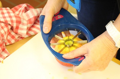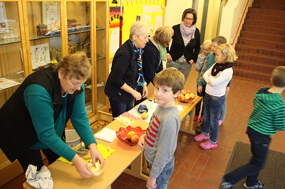 Der Landfrauenverein Wilstermarsch spendierte den Schülern der Grundschule Wilstermarsch an beiden Standorten in St. Margarethen und Wewelsfleth einen vitaminreichen Pausensnack in Form von Äpfeln. In Wewelsfleth standen Silke Wille, Ute Krey und Doris Ehlers, in St. Margarethen Frauke Franzenburg, Traute Alpen und Heike Nagel in der Aula, um die Apfelspenden vom Obsthof Jan Wille mit Apfelportionierern zu zerteilen. Die Schüler kamen klassenweise und konnten sich bedienen. In St. Margarethen kamen die süßen, saftigen Früchte so gut an, dass viele Kids um einen zweiten Apfel baten (Fotos und Text sko). |