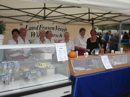 Der Landfrauenverein Wilstermarsch präsentierte sich mit einer Fotowand und einem Stand, an dem es Käsespieße, Kaffee, Waffeln und Bowle zu kaufen gab.