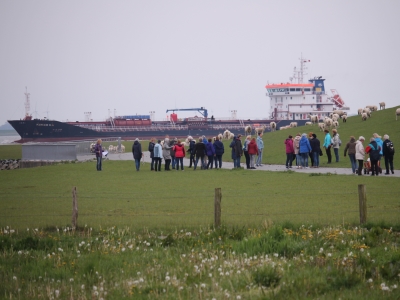 zirka zwei Kilometer am Fuß des Elbdeiches entlang. Dann wurde zurück
