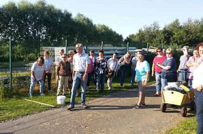 Teilnehmerinnen trafen sich mit Helmut Schröder vom Boßelverein Wilster