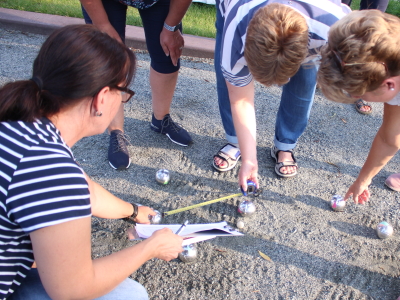 ausgemessen, wer dichter dran lag. Mit viel Spaß und leicht gebeugten