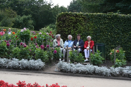 In zwei Gruppen besuchte der Landfrauenverein Wilstermarsch den Dahliengarten in Hamburg. Auf eineinhalb Hektar Fläche zeigt Europas ältester noch bestehender Dahliengarten die Vielfalt von 580 Sorten der Knollenpflanze. Beeindruckt zeigten sich die Frauen von den ornamentartig angelegten Beeten, die mit Buxbaum und Silberblatt eingefasst sind. Der Hamburger Dahliengarten wird vom Bauhof Altona unterhalten und die vier festangestellten Gärtner sind rund ums Jahr beschäftigt, die Anlage zu bewirtschaften. Ehrenamtlich organisieren sie dazu noch Veranstaltungen, wie zum Beispiel die Taufe der Prominenten-Dahlie vor Kurzem. Diesen Pflanzen ist sogar ein eigenes Beet gewidmet, wie auch die Neuzüchtungen und Publikums-Sieger extra gekennzeichnet sind. Auf einem großen Beet ist mit Silberblatt und roten Begonien das Hamburger Stadtwappen dargestellt. Überall im Park sind Stühle und Bänke aufgestellt, die bei gutem Wetter zum Verweilen einladen. Erstaunlich ist, wie der Gartenführer Rolf Hofmann betonte, dass trotz offenen Zugängen kein Vandalismus dem Garten zusetzt. Der Eintritt in die Gartenanlage ist frei, es werden in einer großen Gießkanne Spenden gesammelt, gegen die es auch, auf Voranmeldung, eine Führung mit interessanten Informationen gibt. Die beiden Landfrauen-Gruppen erfuhren viel Wissenswertes über Lagerung und Vermehrung der Knollen, sahen eine grün-blühende Dahlie und eine Vielzahl an Rekord-Blühern. Leider hatte der erste Trupp mit dem Wetter nicht so viel Glück. Die zweite Reisegruppe dagegen konnte sich an den vom Regen saubergewaschenen großblütigen Gewächsen bei bestem Sonnenschein erfreuen. Zuvor hatten die Frauen in Blankenese auf dem Süllberg bei Kaffee und Kuchen den Blick über die Elbe genossen. Das Gelände von „Airbus“ war ebenso beeindruckend, wie die Stadtvillen, die sich eng an die Hänge am Elbufer drückten. (sko) |