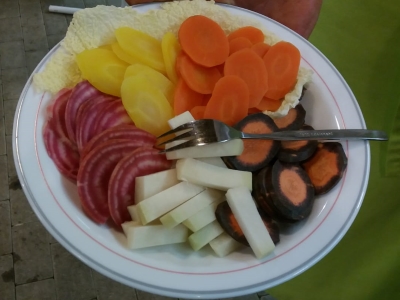 Wurstplatte, Gemüse (auch besondere Sorten wie blaue Möhren und rote