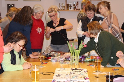 An zwei Abenden fertigte der Landfrauenverein Wilstermarsch Schmuck aus hochwertigem Draht. Formschöne Kettenanhänger, markante Fingerringe, Ohrringe und Armreifen wurden in einfacher Wickeltechnik von den Landfrauen erstellt. Die Anleitung dazu gab Katja Harders aus Diekhusen-Fahrstedt. Die Schmuckdesignerin hatte dazu Draht in verschiedenen Ausführungen und Schmuckperlen sowie Werkzeuge dabei und erläuterte unterschiedliche Techniken (Foto und Text sko). |