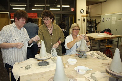 Der Landfrauenverein der Wilstermarsch hat sich für Weihnachten gerüstet. Im Werkraum der Gemeinschaftsschule hat Ute Beimgraben von der Vhs-Wilster in mehreren Gruppen mit den Landfrauen Engel getöpfert. „Ich bin erstaunt, wie verschieden die alle Aussehen, obwohl wir doch eigentlich alle das Gleiche machen“, staunte Christel Alpen und war sich da mit den anderen Hobbytöpferinnen einer Meinung. Es wurden große Engelfiguren zum Hinstellen gefertigt, wozu der weiße Ton mit einem Nudelholz ausgewalkt wurde. Ute Beimgraben hatte bereits Schablonen bereitgelegt, um den Körper aus der Tonplatte zu schneiden. Die Flügel wurden mit einem entsprechend großen Teigausstecher geformt. Die Landfrauen zeigten sich äußerst kreativ bei der Gestaltung der Haarfrisuren und Gewänder. Aus den Tonresten konnten noch flache Engelfiguren und Sterne ausgestochen werden. An vier Abenden war die Engelwerkstatt geöffnet und Ute Beimgraben wird die Figuren jetzt brennen und während der Weihnachtsfeier des Vereins am Mittwoch, 17. Dezember, im Landgasthof Zum Dückerstieg ausliefern(Fotos und Text sko). |