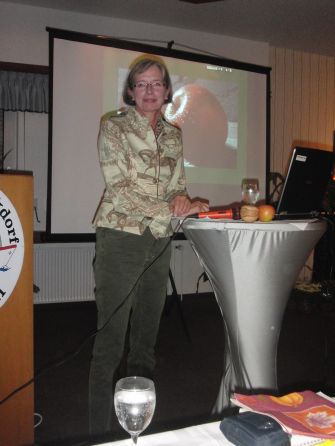 überreicht. Antje Starck, Uta Langholz und Als Referentin des Abends erzählte Else von Ludowig Kulinarisches, Kulturelles und Köstliches rund um den Apfel. Vierzig Kilogramm Äpfel werden im Jahr pro Person in Deutschland verzehrt. Mit einer Produktionsmenge von 1,6 Millionen Tonnen liegt die BRD aber nur auf Platz neun in der Weltrangliste. Spitzenreiter im Apfelanbau ist China mit 20,5 Millionen Tonnen. In Schleswig-Holstein gibt es zirka 600 Apfelhöfe, die von etwa einhundert Betrieben geleitet werden, wobei der Holsteiner Cox hier die wichtigste Sorte ist, wie von Ludowig berichtete. Sie erklärte die Pflück- und die Genussreife, gab Tipps zur Lagerung und erläuterte Apfelbegriffe und Sprichwörter. Der Apfel war schon immer schicksalsbestimmend, um ihn ranken sich zahlreiche Geschichten und Mythen. Weltweit gibt es 30000 Apfelsorten und entsprechend ist die Vielzahl von Rezepten und Verwendungsmöglichkeiten.(sko)