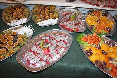 die exotische Früchte zum Verkosten vorbereitet hatte. Der Vorstand