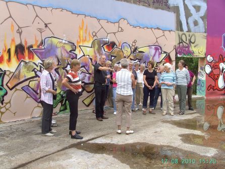 noch im ehem. Schlemmbottich, der rundherum mit Graffitimalereien versehen ist,