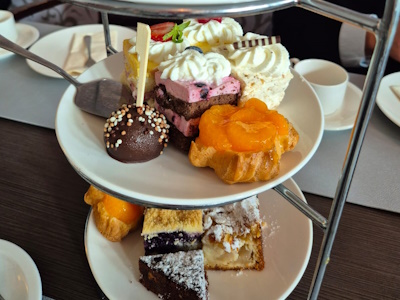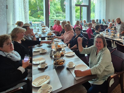 besuchen. Wer ganz nach oben wollte, musste zunächst 389 Stufen und 560 Meter auf dem sogenannten Bergpfad bewältigen. Über Rampen und Treppen schlängelte sich der Weg um den Bunker herum nach oben. Wir wurden mit spektakulären Ausblicken auf die Stadt belohnt. Danach fuhr der Bus uns zum größten Parkfriedhof der Welt nach Ohlsdorf. Am Eingang nahmen wir unsere Reiseleitung für die Rundfahrt/gang auf. Wir erhielten viele wichtige Informationen, wie zum Beispiel, dass der Park mit seinen 389 Hektar zugleich Hamburgs größte Grünanlage ist. An einigen Stellen sind wir aus dem Bus ausgestiegen und haben die Gräber berühmter Persönlichkeiten besucht, darunter den ehemaligen Bundeskanzler Helmut Schmidt und seine Frau Loki, die Schauspieler Hans Albers, Jan Fedder und Inge Meysel sowie den Fußballer Uwe Seeler. Sehr beeindruckend war auch die Gedenkstätte "Garten der Frauen". Zum Abschluss ging es ins Café Fritz. Mit toll angerichtet Etageren voller kleiner Kuchenstückchen genossen wir das Kaffeetrinken. Von da aus fuhren wir wieder zurück in die Heimat 😀 (Fotos und Text mk) |