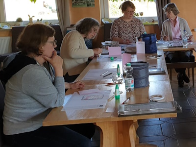 Unser Bastelabend am 16. Mai mit Belinda hat sehr viel Spaß gemacht. 9 LandFrauen waren dabei (Fotos und Text Sigrid Becker).