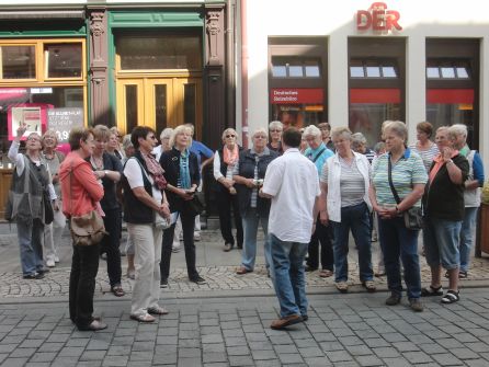 Die 4-Tagefahrt führte die Landfrauen um Silke Wille in diesem Jahr nach Bad Harzburg. Der Bus der Firma Peters-Reisen brachte die Reisegesellschaft zunächst bis Goslar, wo ein kurzer Aufenthalt zur Stadtbesichtigung, von einigen sogar per Pferdekutsche, genutzt wurde. Gegen 14.00 Uhr wurde im Hotel Seela in Bad Harzburg eingecheckt. Einige erkundeten schon einmal die Stadt, andere machten eine Fahrt mit der Seilbahn auf den 482 Meter hohen Burgberg. Dort stand die von Heinrich dem IV. im 11. Jahrhundert erbaute Harzburg. Sie wurde im Jahre 1650 von Herzog Anton dem Jüngeren abgerissen, sodass heute nur noch eine Ruine zu sehen ist. Am 2. Tag starteten die Landfrauen um 9.00 Uhr zur großen Harzrundfahrt. Erstes Ziel war Braunlage; weiter ging es durch den Nationalpark Harz über Ilfeld und Osterode nach Stolberg. Die geplante Besichtigung beim Backwarenhersteller FRIWI fiel leider aus – dafür wurden aber eine Menge Kekse verkostet. Die Mittagspause fand auf eine Waldlichtung bei Breitenstein statt, es gab Würstchen, Kaffee und ….Kekse. Weiter ging es an der Selketalbahn vorbei zur Rappbodetalsperre. Herr Haider vom Nationalpark erzählte die Geschichte der 1952 bis 1959 erbauten Talsperre, die den 3,2 qkm großen Stausee vom Fluss Hassel trennt und dem Hochwasserschutz dient. Interessant war aber auch das Motorrad-Treffen, bei dem die Fahrer mit viel Lärm und Kunststücken über die Talsperre jagen und die Flugseilbahn, mit der die Gäste in einem waghalsigen Flug den Fluss überqueren können. Anschließend fand eine Besichtigung der Köhlerei Stemberghaus in Hasselfelde statt. Der Besitzer führte die Damen über das Gelände und erzählte die Geschichte der Holzköhlerei und erklärte das Herstellungsverfahren der Holzkohle. Am Abend fand in Bad Harzburgs Straßen und im Stadtpark ein großes Lichterfest statt. Tausende von Kerzen und Lampions ließen den Ort festlich erstrahlen. Am 26.8. stand ein Besuch der Glasmanufaktur „Harzkristall“ in Derenburg auf dem Programm. Nach einer Werksführung wurde die Herstellung einer Glasvase vorgeführt. Das Angebot selbst eine Glaskugel herzustellen konnten die Landfrauen aus Zeitmangel leider nicht annehmen. Weiter ging die Fahrt nach Quedlinburg. Mit der Bimmelbahn ging es quer durch die Stadt und die Reisegruppe um Silke Wille wurde bequem an Museen, Kirchen und am Schloss vorbeikutschiert. Ein Kaffeegedeck im Kaffeehaus „Zum Roland“, ein Cafe, das in 7 winzig kleinen miteinander verbundenen Häusern beheimatet ist, rundete den Tag ab. Am Heimreisetag brachte der Bus die Landfrauen zunächst nach Wernigerode am Fuße des Brockens. Dort fand eine Stadtführung mit Herrn Radtke statt. Anschließend brachte der Bus der Firma Peters Reisen die Wilsteraner Damen auf direktem Weg in die Heimatstadt.(tt) Das 7-HäuserCafe in Quedlinburg