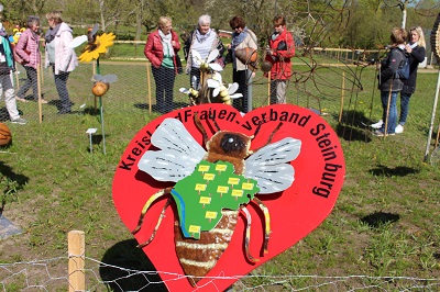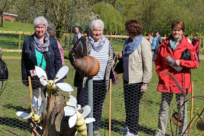 Der Landfrauenverein der Wilstermarsch besuchte die Bienenwiese auf der Landesgartenschau (lgs) in Eutin. Alle Landfrauenvereine waren aufgerufen, das Vereinssymbol, die Biene, nachzubauen. Dabei waren der Fantasie keine Grenzen gesetzt. So finden sich direkt am Haupteingang der lgs nicht nur Bienenkörbe und -Schwärme, sondern auch die Landbiene modebewusst in Gummistiefeln oder ladylike in Lackstiefel mit Prosecco. Die Wilsteraner Biene aus Ton hat Gesellschaft von Kolleginnen aus Holz, Metall und sogar Wolle. Vom Kreisverein Steinburg grüßt ein großes Herz mit einer Biene, die alle Ortsvereine des Kreises auf dem Rücken trägt. Noch bis zum 3. Oktober hat die Landesgartenschau in Eutin geöffnet. Bereits am 25. September werden die Landfrauen-Bienen auf dem Gelände am Eutiner See zugunsten sozialer Einrichtungen versteigert (Foto und Text sko). |