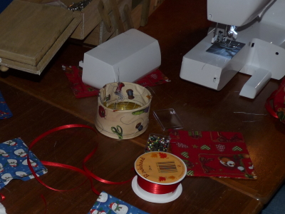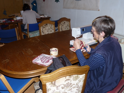 Was macht frau, wenn der Nachwuchs einen Adventskalender benötigt, die Finger beim Kochen und Backen immer so heiß werden und die Bezüge der Badhocker auch nicht mehr so ansehnlich sind? Nein, nicht shoppen gehen, sondern die Nähmaschine aus der Ecke hervorkramen und den Kampf mit der Technik aufnehmen. Dank der Unterstützung von Christel Alpen und Renate Ewers gab es dann aber beim Zurechtschneiden, Einfädeln und Nähen doch für alle Beteiligten ein Happy End. Für alle Beteiligten? Nun gut, die Nähmaschinen müssen jetzt natürlich damit rechnen, dass sie in Zukunft häufiger losrattern dürfen (Fotos und Text ca).