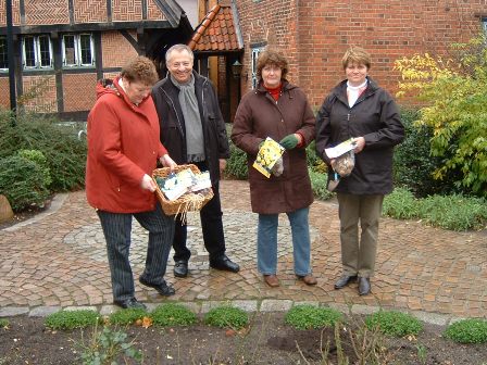 geschenkt. Diese fanden nun am 13.11.06 ihren Platz im städtischen Garten vor dem Naturkundemuseum an der Ecke op de Göten/Schmiedestraße. In Zusammenarbeit mit Wilsters Bürgermeister Walter Schulz setzten Karla Harder, Frauke Franzenburg und Antje Hachmann die Blumenzwiebeln ins Erdreich. Sie hoffen auf eine reiche Blütenpracht im Frühling. Der Landfrauenverein freut sich sehr, auf diesem Wege auch zur Verschönerung unserer Marschenstadt beigetragen zu haben.(tt) |