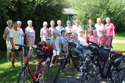 Der Landfrauenverein Wilstermarsch startete mit 21 Frauen zur jährlichen Fahrradtour. „Diesmal marschübergreifend“, sagte Organisatorin Inge Rave aus Beidenfleth. Die Frauen trafen sich am Störsperrwerk, wo es nach einem kleinen „Startpiloten“ in Richtung Kollmar ging. Die Gruppe befuhr den Elberadwanderweg entlang des Elbufers bis nach Glückstadt. Dann quer durch das Stadtgebiet am Glückstädter Rhin lang und durch die Kollmarmarsch bis zum Fährhaus am Kollmaraner Hafen, wo eine Pause mit Kaffee, Kuchen oder Eis für Stärkung sorgte. An der Elbe ging es dann entspannt zurück nach Hause in die Wilstermarsch (Foto und Text sko). |