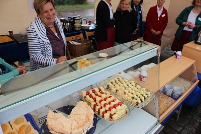 Zum Tag der Vereine präsentierte sich der Landfrauenverein Wilstermarsch auf dem Colosseums-Platz in gewohnter Weise. In einem Pavillon mit Kühltresen wurden fast 13 Kuchen, 120 Waffeln und 7 Kilogramm Käse, angerichtet als Spieße mit Weintrauben oder Tomaten, verkauft. Dazu gab es Kaffee, Saft und Sekt mit selbstgemachtem Holundersirup. „Es hat wieder viel Spaß gemacht, war aber auch ein anstrengender Tag“, fassten die Landfrauen zusammen. Gleich nach dem Aufbau öffnete der Himmel seine Pforten und es regnete in Strömen, was zur Eröffnung durch den Regionalverein kaum Leute auf den Platz lockte. Zur Kaffeezeit riss aber die Wolkendecke auf und bei strahlendem Sonnenschein konnten die Veranstalter und teilnehmenden Vereine aufatmen. Zahlreiche Besucher genossen bei angeregten Gesprächen die angebotenen Spezialitäten, das bunte Bühnenprogramm und die von den Vereinen durchgeführten Aktivitäten (Fotos und Text sko). |