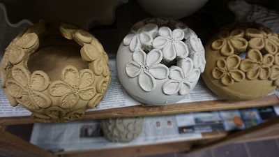 Ute Beimgraben wurden mit Blüten verzierte Tonkugeln in verschiedenen