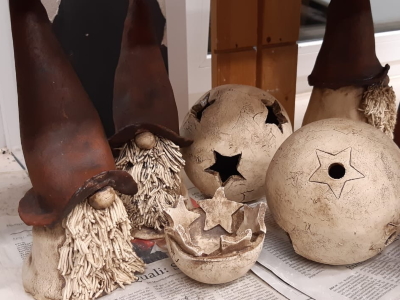 Geschick entstanden Wichtel, Rentiere und Kugeln mit Sternen oder