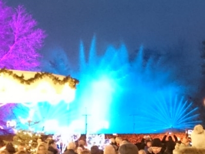 weihnachtlicher Musik und buntem Licht, sprühten die Wasserfontänen im