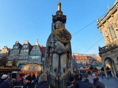 der Bus mit 43 Landfrauen nicht ganz voll besetzt war. Die LandFrauen waren schon in richtiger Weihnachtsstimmung, denn in Wilster hatte es kräftig geschneit. Die Fahrt nach Bremen war kurzweilig, da man sich wieder viel zu erzählen hatte. In Bremen angekommen, strömten die Landfrauen bei schönstem Sonnenschein, jedoch jetzt ohne Schnee, in alle Richtungen aus. Es wurde der Weihnachtsmarkt am Rathaus und an der Weser besucht, zu Mittag gegessen, Weihnachtseinkäufe erledigt oder gemütlich im Schnoorviertel Kaffee getrunken. Die Zeit verging mal wieder viel zu schnell. Um 18 Uhr traten wir wieder die Heimreise an. Es war ein rundum toller Tag und Bremen hat uns mit seinem Flair begeistert (Fotos und Text mk). |