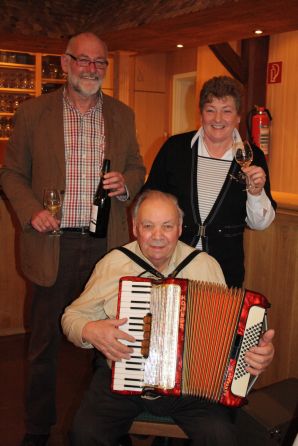 Am 10. Februar hatten die Wilsteraner Landfrauen den Winzer Rudolf Pauly zu Gast. Zur Einstimmung las Silke Wille eine Geschichte über eine mörderische Weinprobe auf Plattdeutsch. Mit seinem Vortrag „Der Moselwein – vom Anbau bis zur Lese“ stellte der Senior des Familienbetriebes sein in Lieser an der Mosel gelegenes Weingut vor. Danach wurden verschiene Weine verkostet. Kurt Schmidt aus St. Margarethen spielte Akkordeonmusik dazu. |